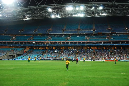 Tonight Maz, Bro K & I headed to Homebush to see NSW beat Tassie in the KFC Big Bash. A good night’s entertainment, made somewhat more amusing when I gave the guys sitting next to me an inside tip for a sledge on Bailey that went down a treat… had him shaking his head, clearly wondering how on earth anyone knew about the incident in question!