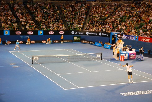 Scored some free centre court tix for the Oz Open tennis last night. Gold. Jelena Dokic put on a great show to beat her more favoured opponent Anna Chakvetadze in 3 sets. It was clearly an emotional experience for Dokic, and I found myself fighting to hold back a tear as she thanked the crowd for their support.