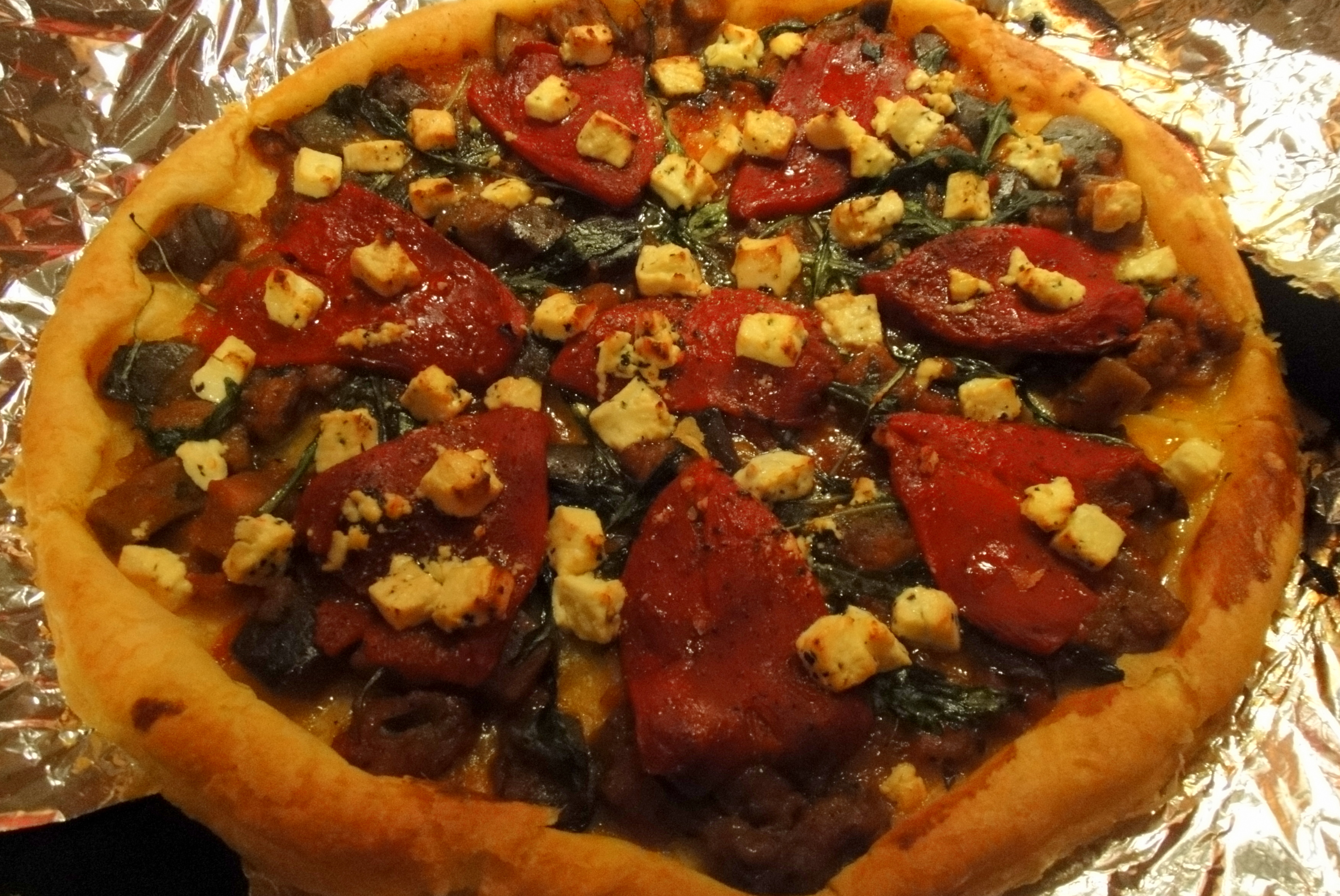 Followed by an entree of aubergine, pepper, rocket & feta tart…